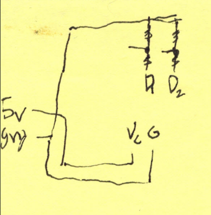 Sketch of the circuitry, the resistors are 100 and 57 kΩ